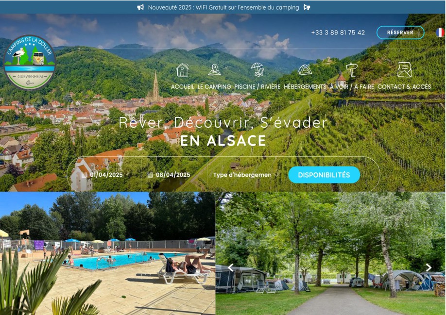 Le camping 3 étoiles "La Doller" est idéalement situé à Guewenheim, proche de Belfort, Mulhouse et Colmar, dans le sud de l’Alsace.